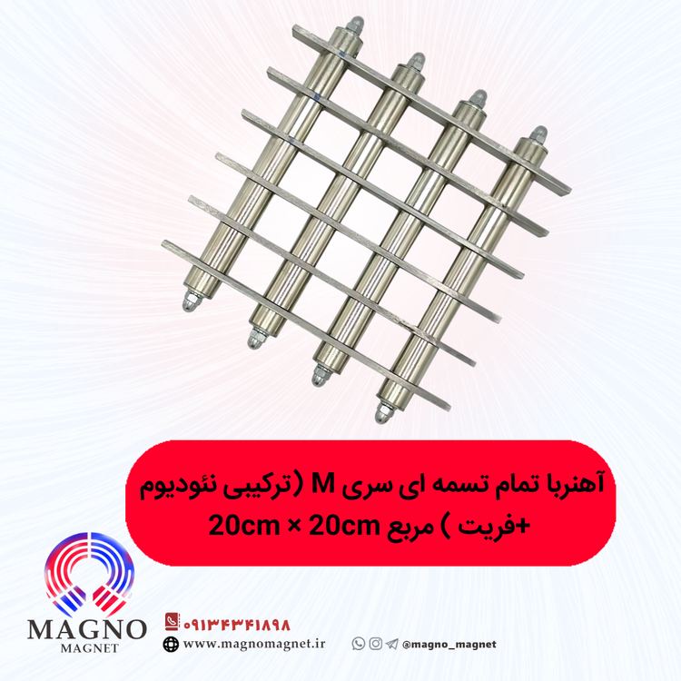 آهنربا قوی تمام شبکه ای سری M ترکیبی (نئودیوم+فریت) ساخته شده از اهنربا های نئودیوم و فریت با قدرت بیشتر نسبت به آهنربا های شبکه ای معمولی قابلیت جذب و جداسازی براده فلزات و سایر فلزات همراه گرانول دارد