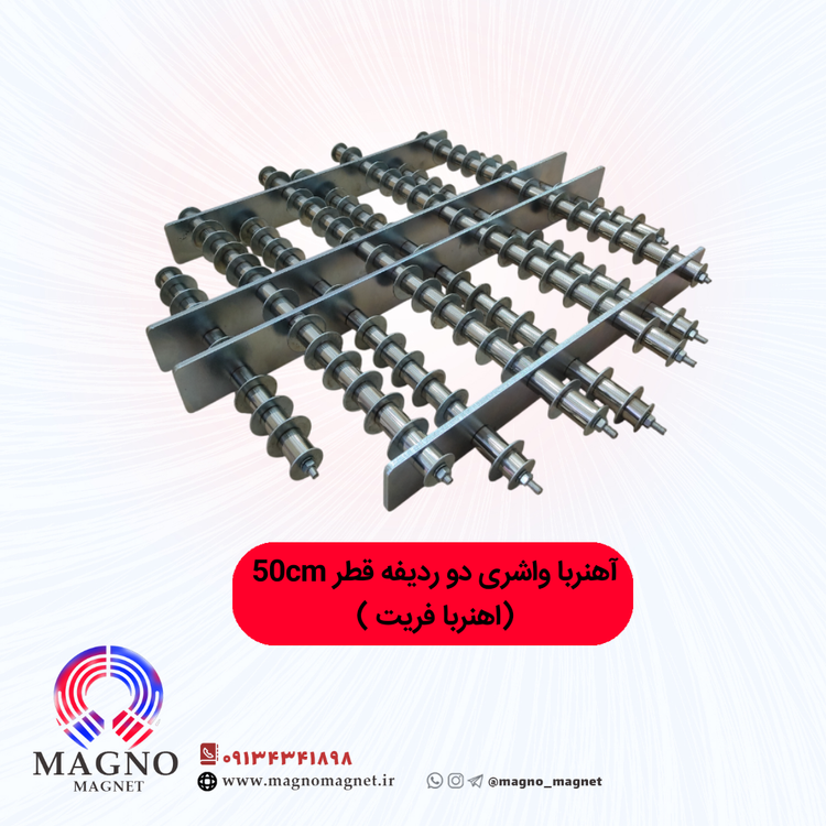 اهنربا شبکه ای واشری ۲ ردیفه قطر ۵۰ سانتی متر مناسر برای جدا سازی برادده ها و پیچ و مهره و اشیا کوچک اهنی از مواد گرانول و پت